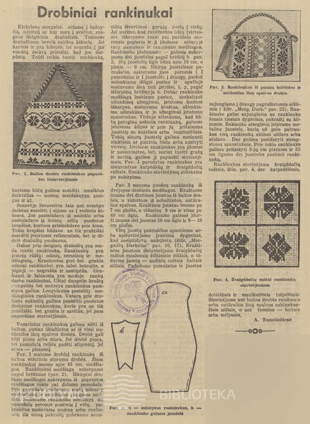 Audimo staklių patobulinimai. Audinių rašto panaudojimas mezginiuose. Moteris.-1938, nr. 20, p. 334.