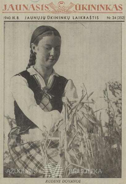 Mergaitės su tautiniais drabužiais. Jaunasis ūkininkas.-1940. nr. 15, p. titulinis.