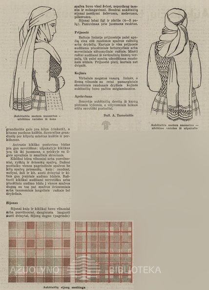 A. Tamošaičio straipsnis apie aukštaičių tautinį kostiumą (straipsnio pradžia). Jaunasis ūkininkas.-1938, nr. 3, p. 37.
