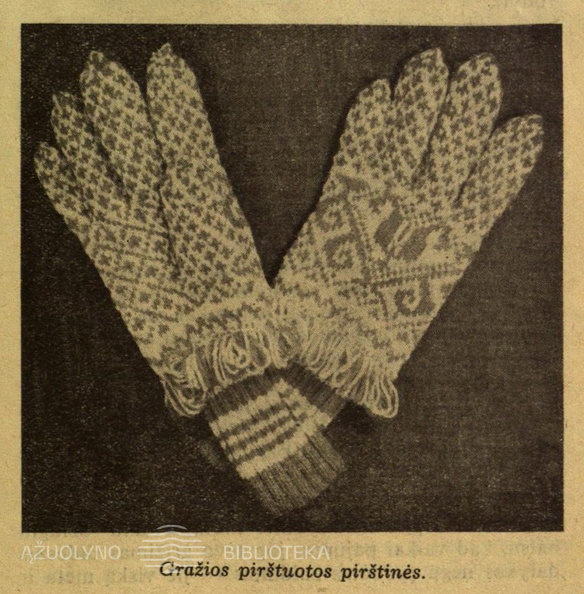Raštuotos pirštinės su tekstu ir valstybine simbolika. Moteris.-1933, nr. 2, p. 29.