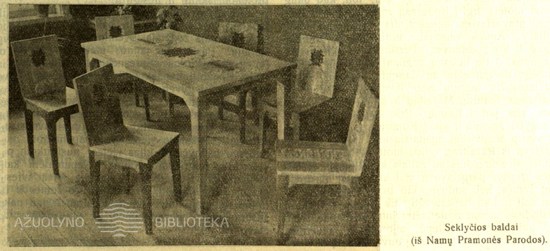 J. Prapuolenio baldų parodos pristatymas. Moteris.-1932, nr. 5, p. 76.