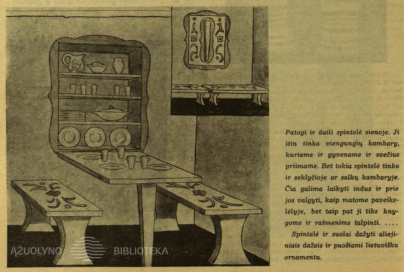 Seklyčios baldai iš Namų pramonės parodos. Moteris.-1933, nr. 6, p. 89.