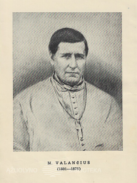 Vyskupas Motiejus Valančius : [nežinomo autoriaus pieštas portretas prie Vaclovo Biržiškos straipsnio „Du Valančiai“] // Krivulė, 1925, Nr. 9, p. 193.