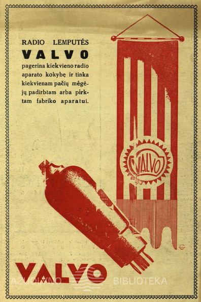 „Valvo radio lemputės pagerina kiekvieno radio kokybę...“ Meno dienos.-1934, nr. 3, p. nenumeruotas.