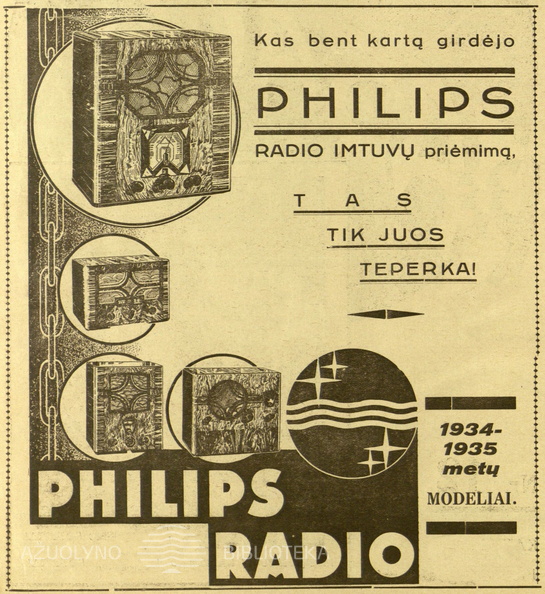 „Philips 930 šį sezoną yra populiariausias imtuvas.“ Bangos.-1932, nr. 7, p. nenumeruotas.