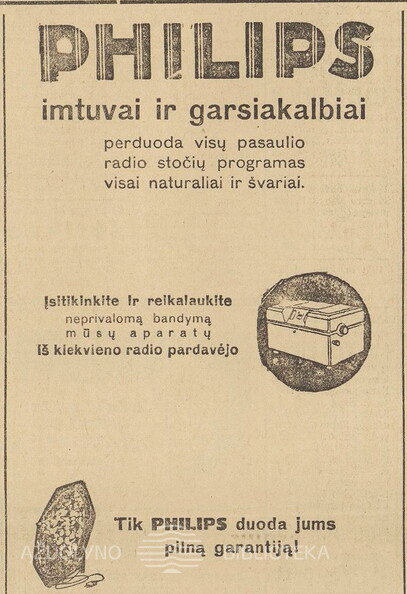 Galima laimėti „nemokamą Philips atostogų kelionę ir litų 1000.“ Ūkininko patarėjas.-1937, nr. 12, p. 12.