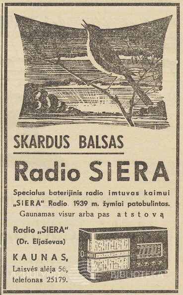 „Laimingų 1938 metų! Siera radio“. Ūkininko patarėjas.-1937, nr. 52, p. 23.