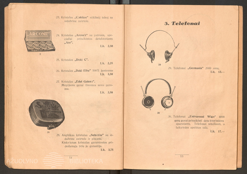 Radijo imtuvų dalys. Garsiakalbiai. Iliustruotas radio-katalogas / H. Gladšteinas. – Kaunas: [H. Gladšteinas], [1929], p. 18-19.