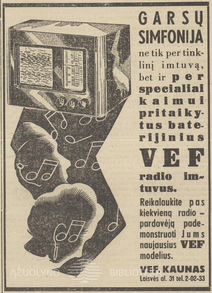 „Neregėtas pigumas. Reikalaukite visur tik VEF radijo aparatų“