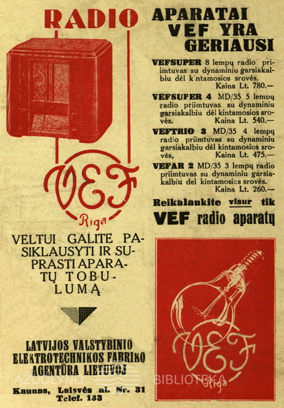 „Neregėtas pigumas. Reikalaukite visur tik VEF radijo aparatų“